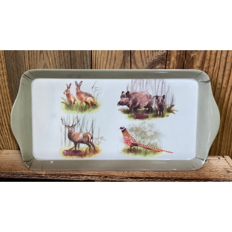 Petit plateau en plastique avec 4 espèces de gibier.