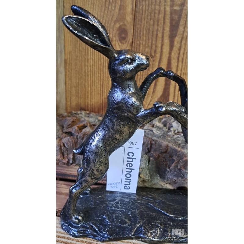 Deux lièvres combattants sur leurs pattes, en résine.
