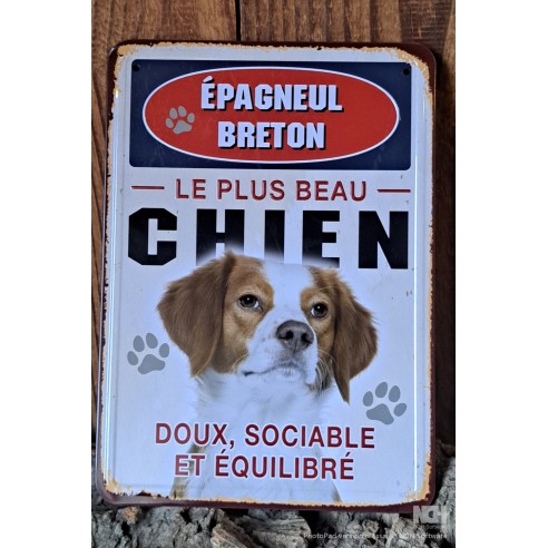 Plaque en métal aspect vieilli petit format avec votre chien de race épagneul dessus. dimensions 15 * 21