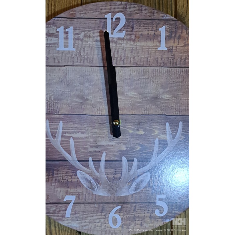 Petite horloge typée chasse de 30 cm avec bois de cerf