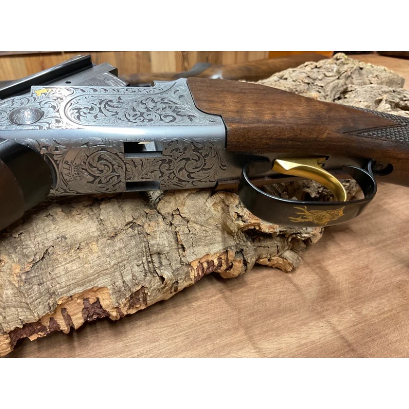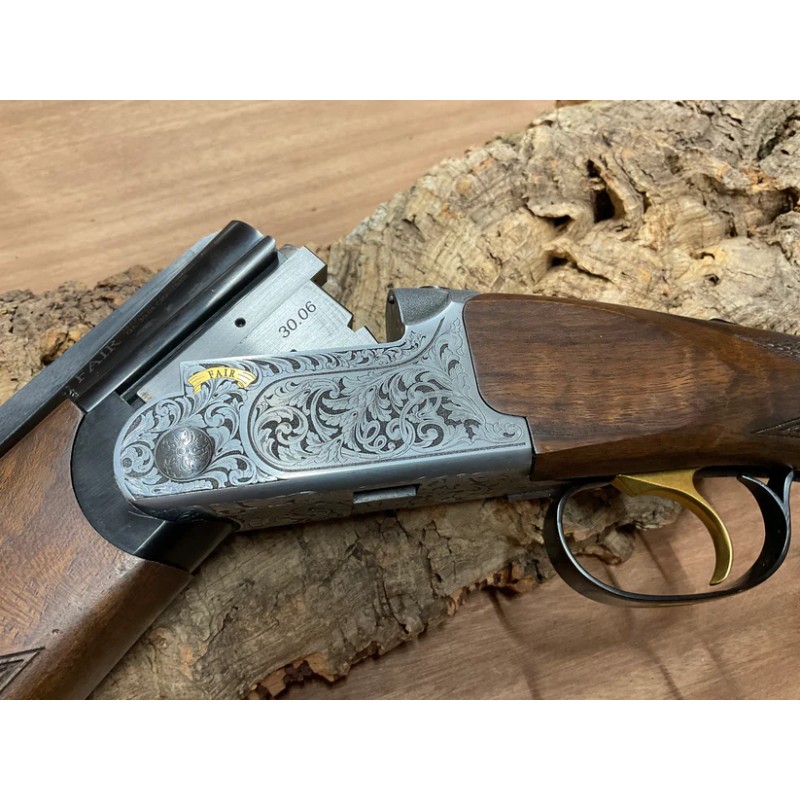 Carabine de chasse Express Fair avec bascule gravée de profonds motifs floraux.