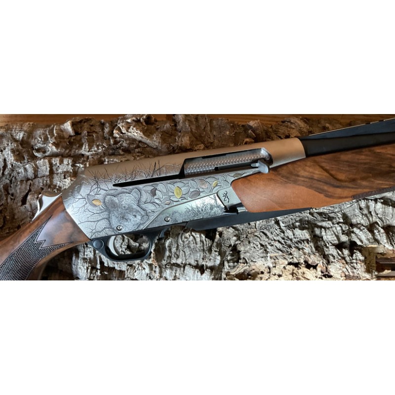 La reine de la chasse en battue a reçu une splendide gravure faite de subtiles touches d'or, pleine de contrastes et retouchée à la main par Giovanelli. Cette BAR 4X est disponible dans les calibres les plus courants et est équipé d'organes de visée de battue.