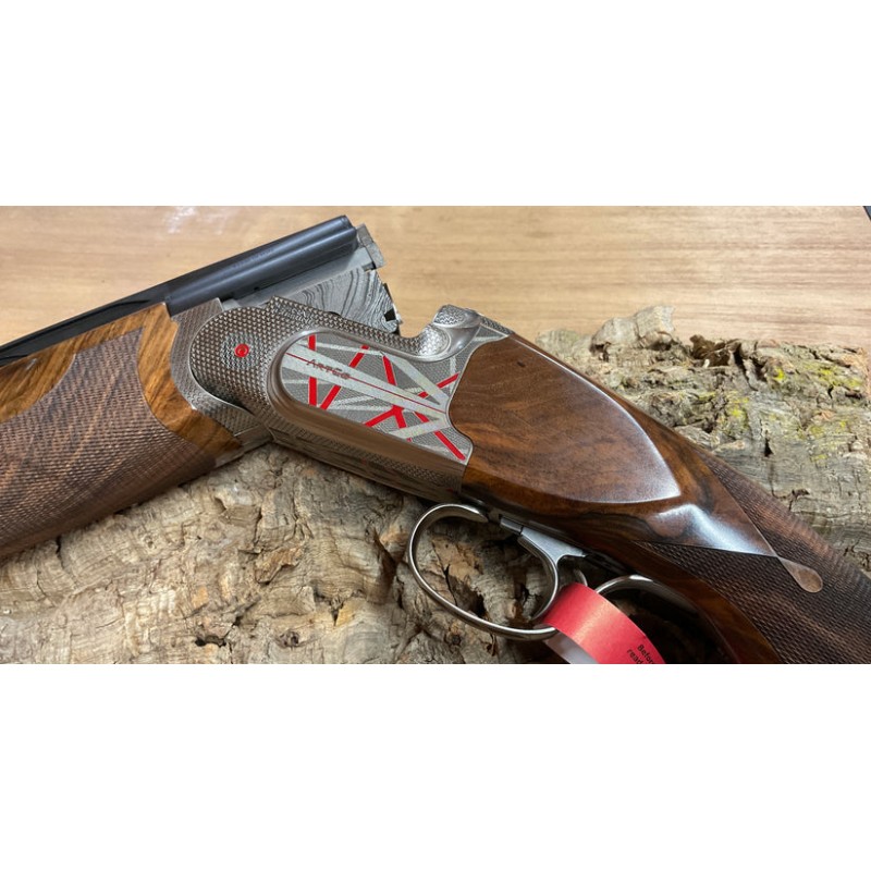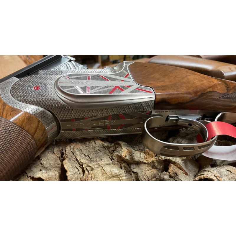 Ce nouveau système révolutionnaire change complètement la façon dont les canons et le corps de l’arme se verrouillent lorsque le fusil est fermé, ce qui rend l'ensemble du système incroyablement plus résistant. Pour la première fois, vous pouvez mesurer la durée de vie de votre fusil non pas sur la période durant laquelle vous pourrez tirer avec, mais sur celle où vos enfants et petits-enfants continueront à utiliser votre arme ! Crosse Trap réglable - L. 377 mm Bande demi haute réglable Plaque de couche en caoutchouc Livré avec 8 chokes externes longs La bascule plus large offre une surface de contact plus importante avec la structure métallique du garde main, augmentant la résistance tout en réduisant les frottements. Afin de réduire les vibrations, un intercalaire en élastomère a été ajouté entre le bouton de déverrouillage et le bois du garde main.