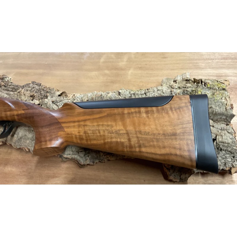 Chambrage 12/70 mm Canon 76 cm Finition du canon : Noire satinée Bande de visée fuyante 10 - 8 mm Guidon terminal : Bradley rond blanc Guidon intermédiaire : oui Chokes inclus : 4 EXIS HP (SHORT - MEDIUM - LONG - XTREME) Bascule en acier forgé Charnière à résistance réglable. Finition de la bascule : Noire satinée avec logo bi-tons Détente : Mono détente non sélective. Crosse :Pistolet avec busc réglable Longueur de crosse : 377 mm Sabot : HRA incurvé 22 mm Pente au busc 35 mm - Pente au talon 45 mm. Finition des bois : Poncée huilée Poids : 3.5 kg environ Arme éprouvée à 1630 BAR. Livré avec une valise ABS
